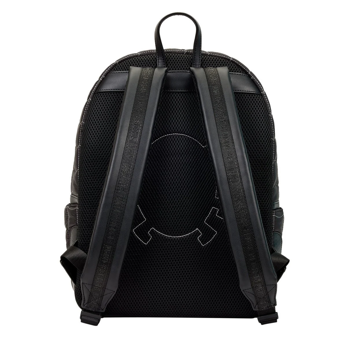 Show off some serious Spidey style with this backpack! This backpack is full-size, so there’s plenty of space to carry everything you need. The design is inspired by Spider-Man’s black suit. You’ll find rubber details of his eyes and spider symbol. Puffed nylon, quilting, debossing, and embroidery makes this an upleveled style to carry with you. Express your love for Spider-Man with a sleek backpack that gives a heroic feel! This is a nylon full-size backpack that features faux leather trim, a sturdy top handle, adjustable shoulder straps, an applique, mesh, silicone, a rubber patch, a woven zipper charm, debossed, embroidered and printed details with a coordinating interior lining!